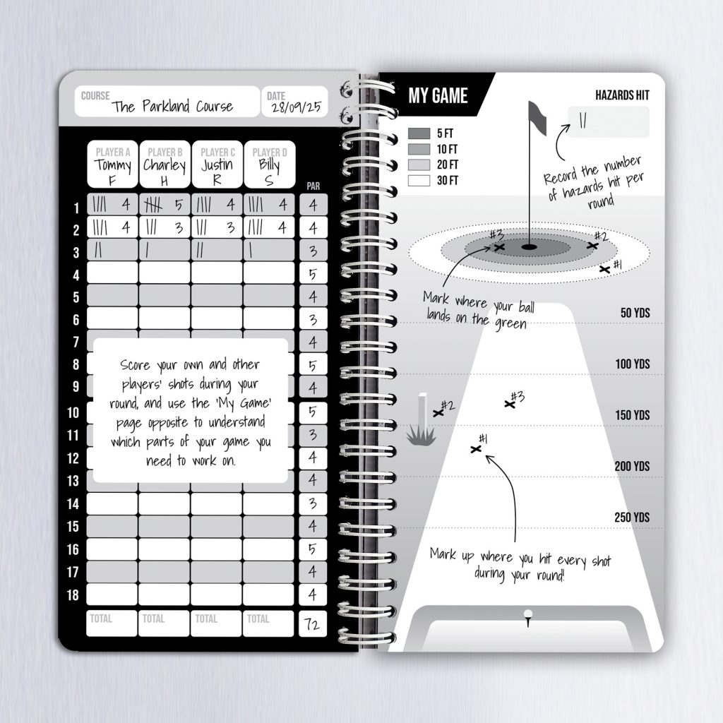 The Golf Book™ is a golf score log book and performance journal designed to help golfers track their rounds, analyse their performance, and improve their game over time. Whether you’re a junior golfer starting your journey, a competitive player working on consistency, or a weekend golfer who loves the challenge of the game, this golf performance journal helps you reflect on every round and learn from every shot.