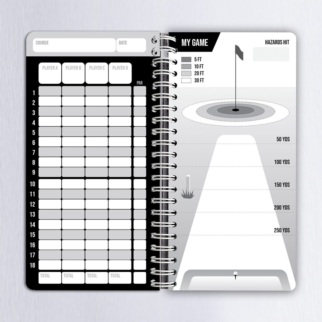 • 25 golf round scorecards to record scores and track performance